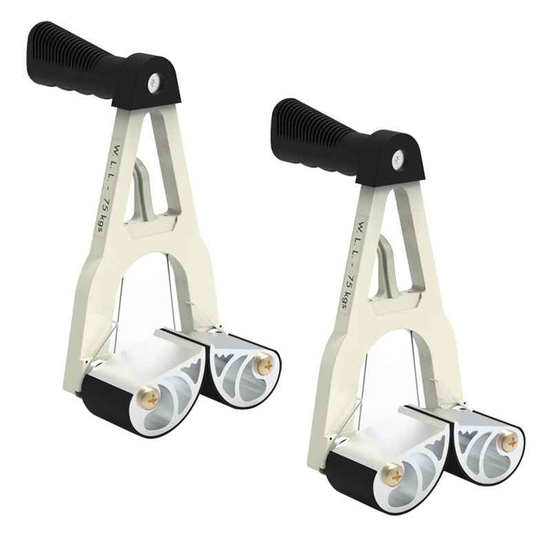 This device significantly reduces stress and the potential injuries to the fingers, wrists, and back. It also reduces physical fatigue. The Stone Panel Carrier with Cable works by clamping onto the edge of panels, creating a sturdy temporary handle for the workers who are carrying them. It allows tradespeople to lift and move panels with a straight back, thereby avoiding back injuries.